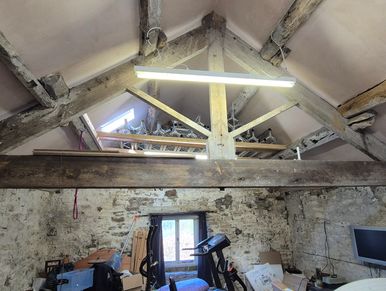 This project involves converting the loft space above the existing garage into ancillary accommodation for the main house. The current stairs from the garage to the loft will be removed, and a new external oak staircase will provide a separate entrance to the space. The renovated loft will include a bedroom, bathroom, and a combined kitchen and dining area.