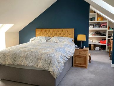 This thoughtfully designed loft conversion transforms previously unused attic space into a bright and functional living area. Featuring carefully considered proportions and high-quality finishes, the space now accommodates a spacious bedroom with ample natural light, made possible through the addition of roof windows. Smart storage solutions have been integrated into the eaves, maximizing practicality without compromising aesthetics. Clean lines, neutral tones, and subtle architectural detailing, such as exposed beams or bespoke joinery contribute to a calm, contemporary atmosphere. Whether used as a guest suite, home office, or private retreat, this loft conversion adds significant value and versatility to the property while maintaining harmony with the original structure.
